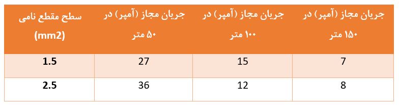 این دادهها نشان میدهد که سیم افشان ۲.۵ میلیمتر مربع که در فاصله کوتاه میتواند ۳۶ آمپر را تحمل کند، اگر در مسافت ۱۰۰ متری استفاده شود، ظرفیت آن برای جلوگیری از افت ولتاژ غیرمجاز، به ۱۲ آمپر کاهش مییابد.