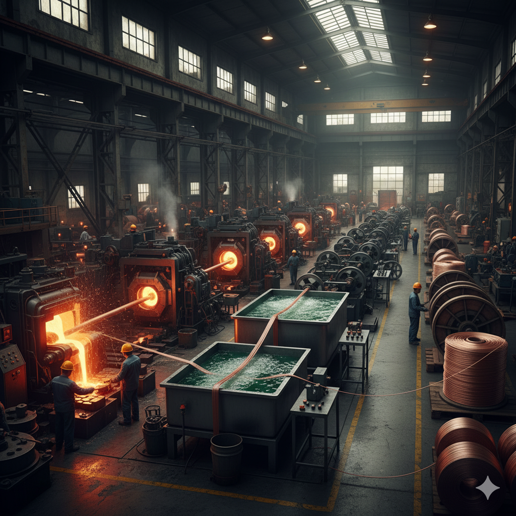 فرآیند تولید سیم مسی یک زنجیره صنعتی پیچیده و دقیق است که باید تحت کنترل کیفی مستمر و مطابق با استانداردهای سختگیرانه ملی و بینالمللی (مانند ISIRI 3084) انجام پذیرد. هدف از این فرآیند، تبدیل مس خام (کاتد) به هادیهایی با انعطافپذیری و رسانایی بهینه است.