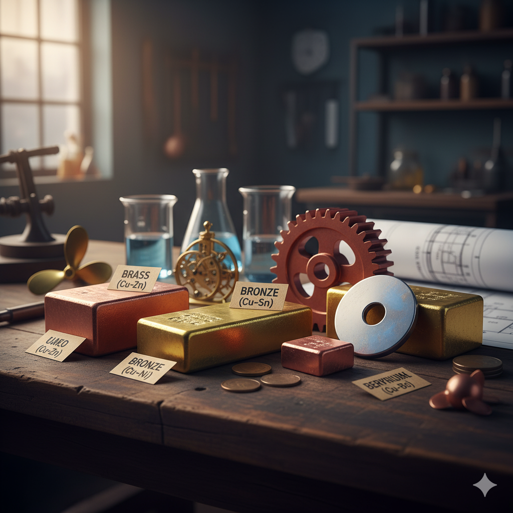 برنز (Bronze): برنز معمولاً آلیاژی از مس (حدود ۸۸٪) و قلع (حدود ۱۲٪) است. برنز خصوصیاتی مانند هدایت حرارتی بالا، شکلپذیری عالی و مقاومت بالا در برابر خوردگی آب شور دارد. به همین دلیل، در یاتاقانها، بوشینگها و پروانههای کشتی کاربرد دارد.