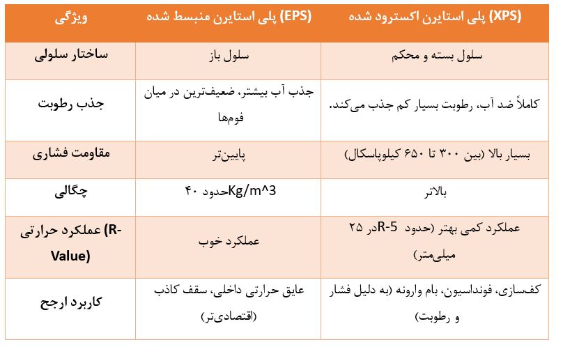 ۴.۲.۱. مقایسه پلی استایرن منبسط شده (EPS – یونولیت) و پلی استایرن اکسترود شده (XPS)