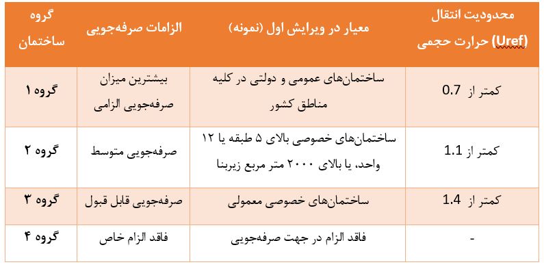۵.۲. گروهبندی ساختمانها و محدودیتهای انتقال حرارت حجمی