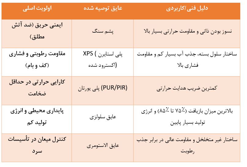 ۷.۲. جمعبندی مقایسهای: کدام عایق برای کدام کاربری؟